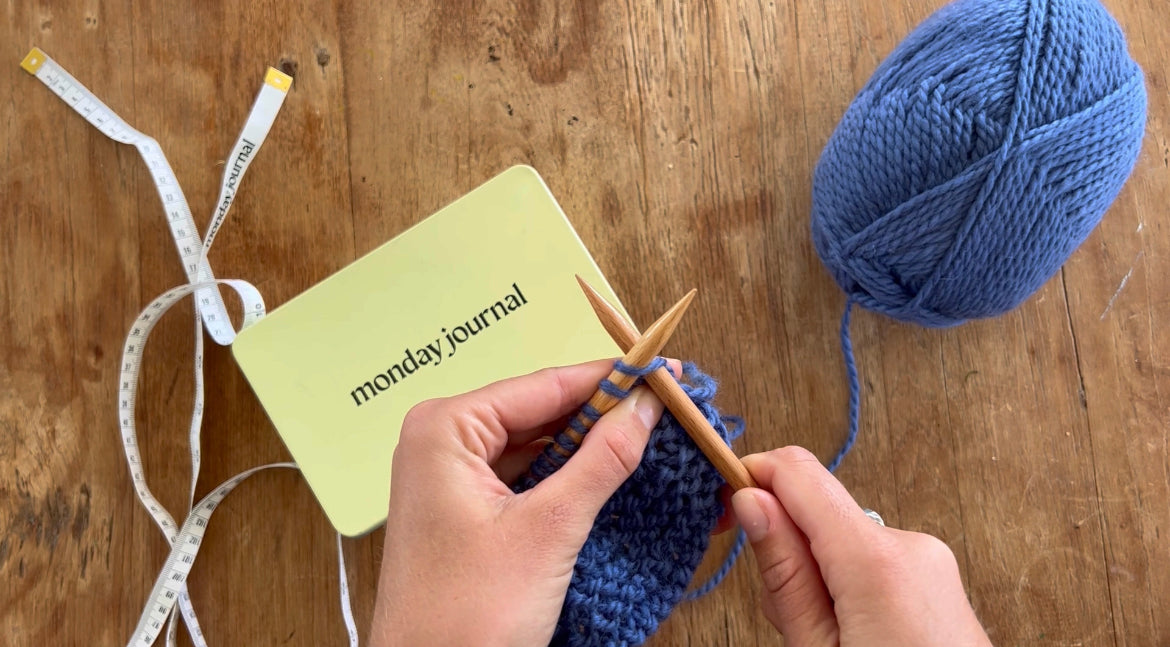 Slide your right hand needle into the first stitch on your left hand needle.
