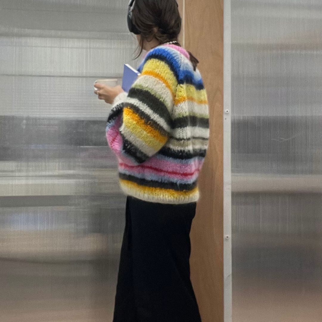 The Ugly Sweater Pattern is an advanced beginner knitting pattern with instructions for sizes XS [S, M, L XL] (au/nz sizing). A colour chart is also included that outlines how to replicate the rainbow pattern pictured, if you don't feel confident freehanding the colours.